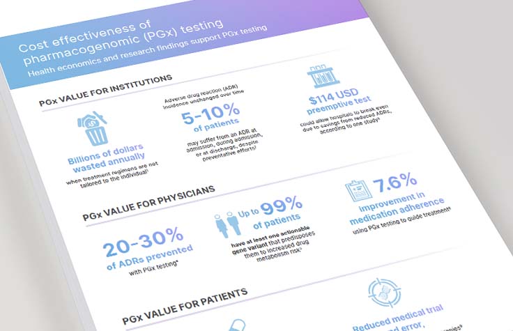 药物基因组学(PGx)主要是研究人类基因组变异如何影响人类对药物的反应。在一项研究中,超过99%的被评估人员的基因型与至少一种药物的较高风险相关。1 药物基因组学研究可通过提高药物安全性和疗效以及降低医疗成本,为个人和医疗保健人员带来更好的治疗结果。