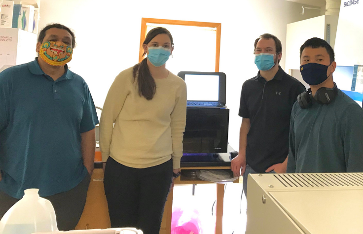 Illumina的代表Smith和Rutt与NBDC的员工Jonathan Kim和Audra Crouch一起工作了2天,Jonathan Kim刚从密歇根大学公共卫生专业硕士毕业,Audra Crouch则是俄亥俄州立大学微生物组学专业的研究生。Rutt负责安装NextSeq、校准光学系统并运行测试,确保液路和所有其他系统能够正常运行;Smith则负责培训、演示软件操作,并与Kim和Crouch一起进行了仪器的首次运行。