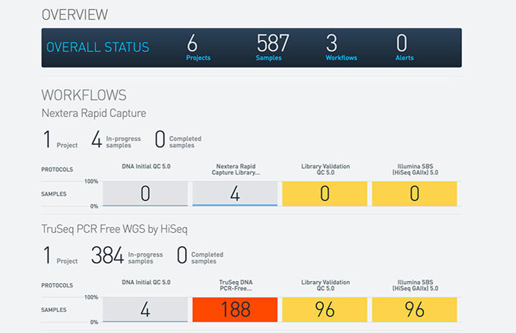 BaseSpace Clarity LIMS是我们的实验室信息管理系统。本系统专为基因组学实验室设计,并针对NGS进行了优化。BaseSpace Clarity LIMS可与仪器整合,帮助实验室追踪和管理样本,并简化实验室的整体操作。与复杂的自建系统相比,BaseSpace Clarity LIMS在设计时充分考虑了终端用户的感受,便于实验室人员更迅速地掌握操作方法。