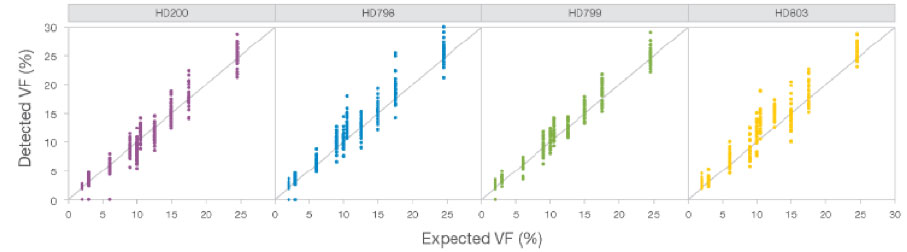 使用AmpliSeq for Illumina Focus Panel评估从福尔马林固定的HD样本中提取的DNA,并用MiniSeq和MiSeq系统进行测序。结果表明,检测到的变异频率与预期100%一致。