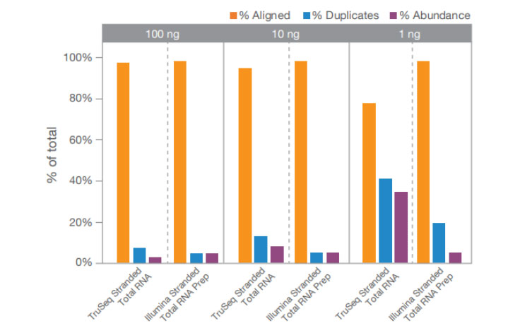 Illumina Total RNA Prep with Ribo-Zero Plus可准确测量基因和转录本丰度,并编码RNA和多种形式的非编码RNA中已知的和新的特征。研究人员能够可靠地揭示替代转录本、基因融合和等位基因特异性表达。此外,Illumina Stranded Total RNA Prep with Ribo-Zero Plus Microbiome可为宏转录组学应用提供高质量数据。