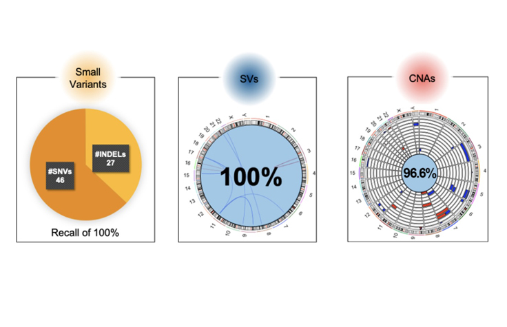 Research on cancers such as acute myeloid leukemia, myelodysplastic syndrome, myeloma, and chronic lymphocytic leukemia has led to major improvements in personalized care. Traditional approaches to testing may include karyotype, FISH (fluorescence in situ hybridization), chromosomal microarray, and gene panels. Whole-genome sequencing can detect all the critical abnormalities and variant types relevant for these conditions with a single workflow.