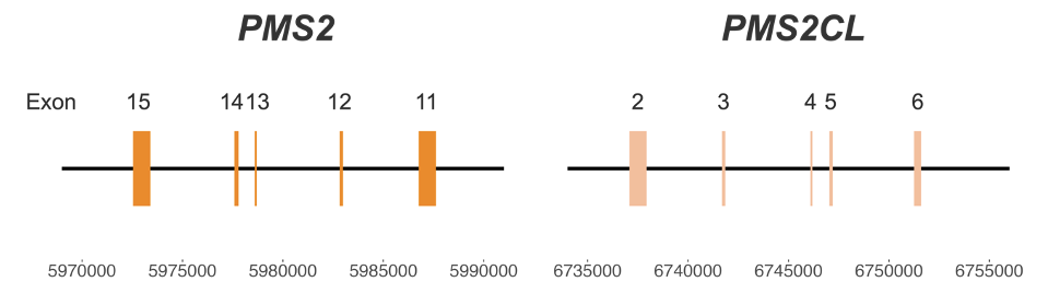 图1:PMS2和PMS2CL基因之间的高同源性区域——坐标来自hg38。