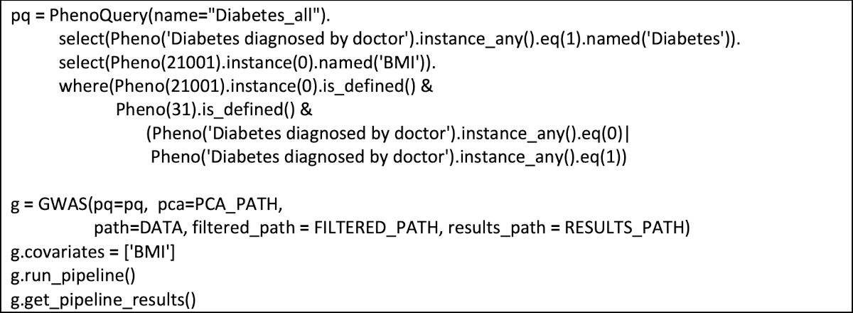 A sample cohort must be provided. This can be done either using a PhenoQuery (as described above) or in an alternate way that generates a data-frame containing the list of phenotype values and co-variates.