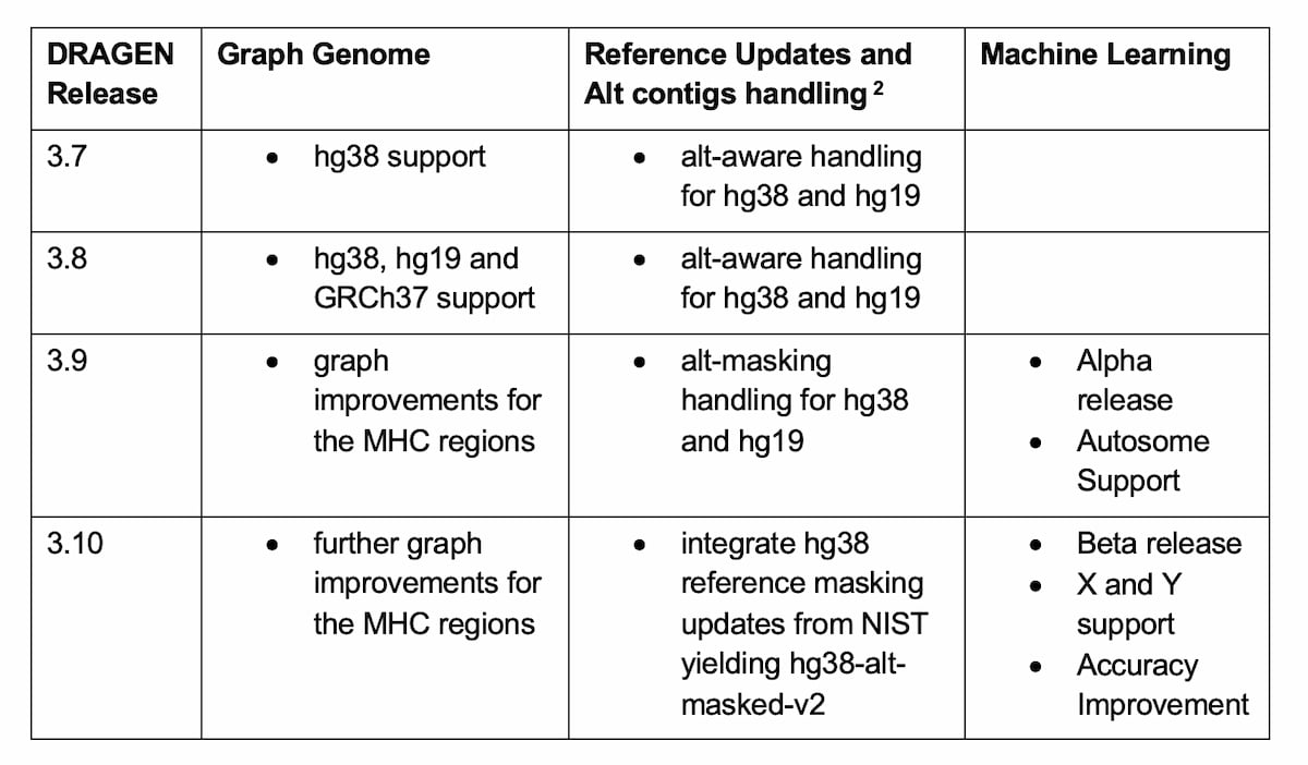 Table 2: Methods Improvements yielding better small VC accuracy in DRAGEN since the PrecisionFDA Truth Challenge v2.