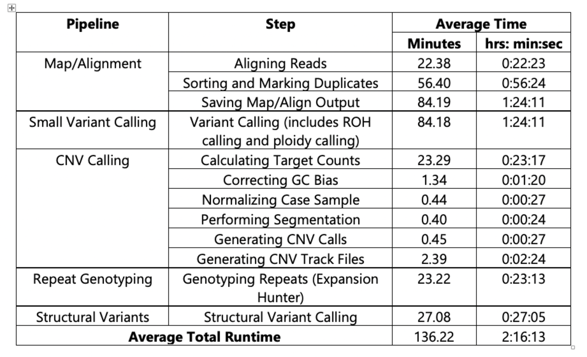 Table 2. Average Run Times for DRAGEN v3.5.7b on ICA (f1.4xlarge instance)