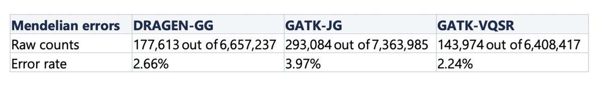 Table 5. Mendelian Error Rates per Pipeline