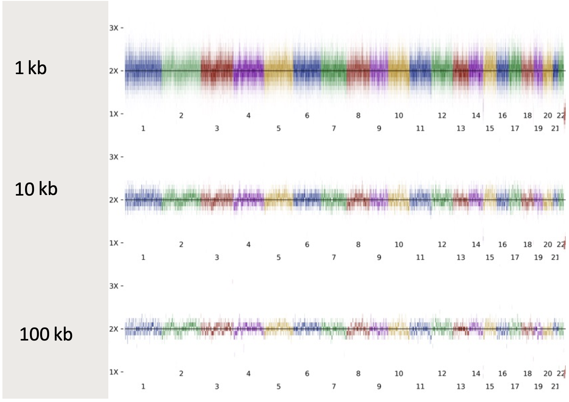 从数学角度来看,覆盖深度在检测较小事件时的准确性会受到随机波动的干扰,信号变得更加杂乱(如图1所示)。对于大于100 kb的大型事件,这种噪音基本可以忽略不计。在10-100 kb的范围内,尽管存在噪音,但通常不会造成问题。而在1-10 kb的范围内,噪音非常高,出现假阴性和假阳性结果的风险也显著增加。