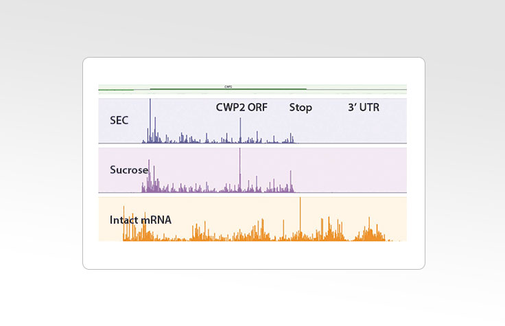 核糖体分析使用尺寸排阻色谱。此方法简化了将核糖体保护的RNA片段化为兼容Illumina仪器测序的文库的步骤。它是简单、快速且可扩展的方法,不需要专门的仪器。相反,其他分离多核糖体和单核糖体的方法依赖数小时使用蔗糖梯度或缓冲物的超速离心。