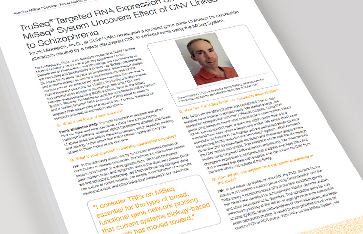 纽约州立大学上州医科大学(UMU)的Frank Middleton博士研发了一种重点基因panel,筛查由精神分裂症中新发现CNV导致的表达变化。了解Middleton博士为什么使用靶向RNA-Seq而不是PCR或芯片来分析数百个与精神分裂症、双相障碍和自闭症相关的基因。